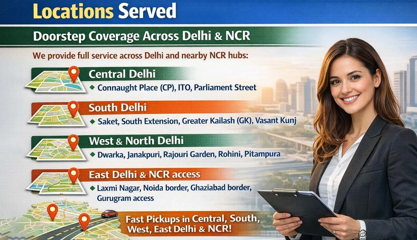 We provide full service across Delhi and nearby NCR hubs:
