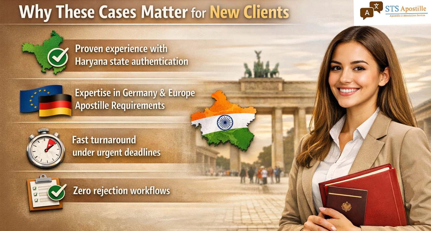The client received a job offer from Germany with a strict joining deadline. The employer required an apostilled degree certificate, but the document first needed Haryana state authentication through the SDM route. The client was worried about delays and possible visa rejection.